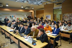 On April 15, 2025, the Department of Turkic Studies and Central Asian Peoples (Mongolian and Tibetan Studies section) hosted Prof. L. Dashnyam, Chair of the Mongolian Language Council under the Prime Minister of Mongolia. During the meeting, participants discussed opportunities for collaboration between Polish and Mongolian scholars, including a publication on the achievements of Władysław Kotowicz, joint work on a Polish-Mongolian / Mongolian-Polish dictionary, and academic exchange. The meeting was attended by Prof. Agata Bareja-Starzyńska – Dean of the Faculty of Oriental Studies and Vice President of the International Association for Mongol Studies; Dr. Jan Rogala – Head of the Department of Turkic Studies and Inner Asian Peoples; as well as faculty and students of Mongolian and Tibetan Studies.